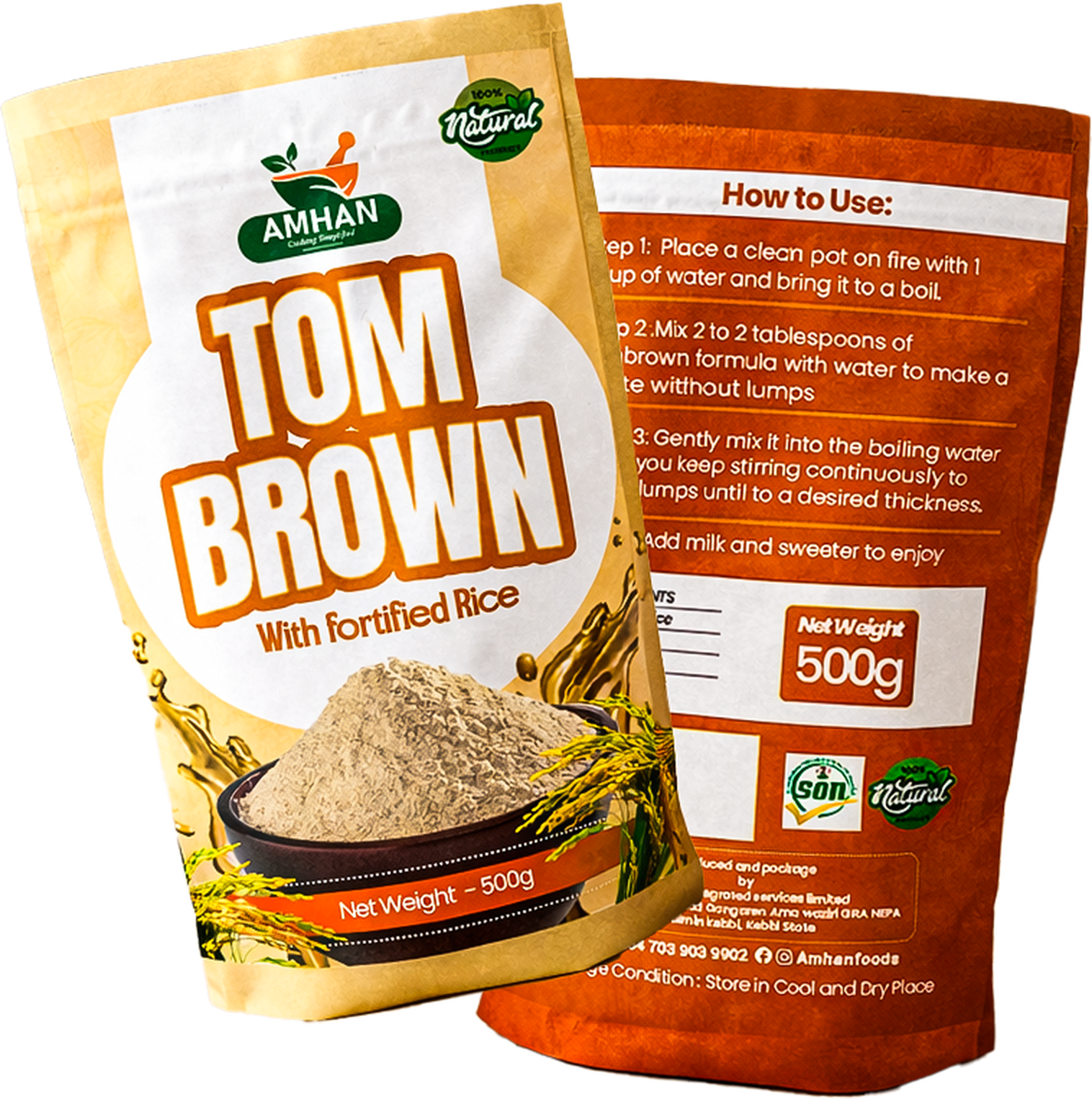 Ahman Tombrown is a carefully crafted, nutritious blend made from high-quality soya beans and other locally sourced ingredients, designed to provide balanced nourishment for individuals and families. Rich in plant-based protein, essential vitamins, and natural nutrients, it serves as a wholesome meal option that supports healthy growth, energy, and overall well-being.